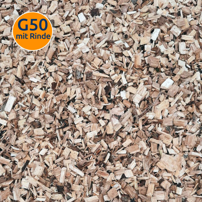 Hackschnitzel Mischholz, Schnittgröße G50, waldfrisch mit Rinde